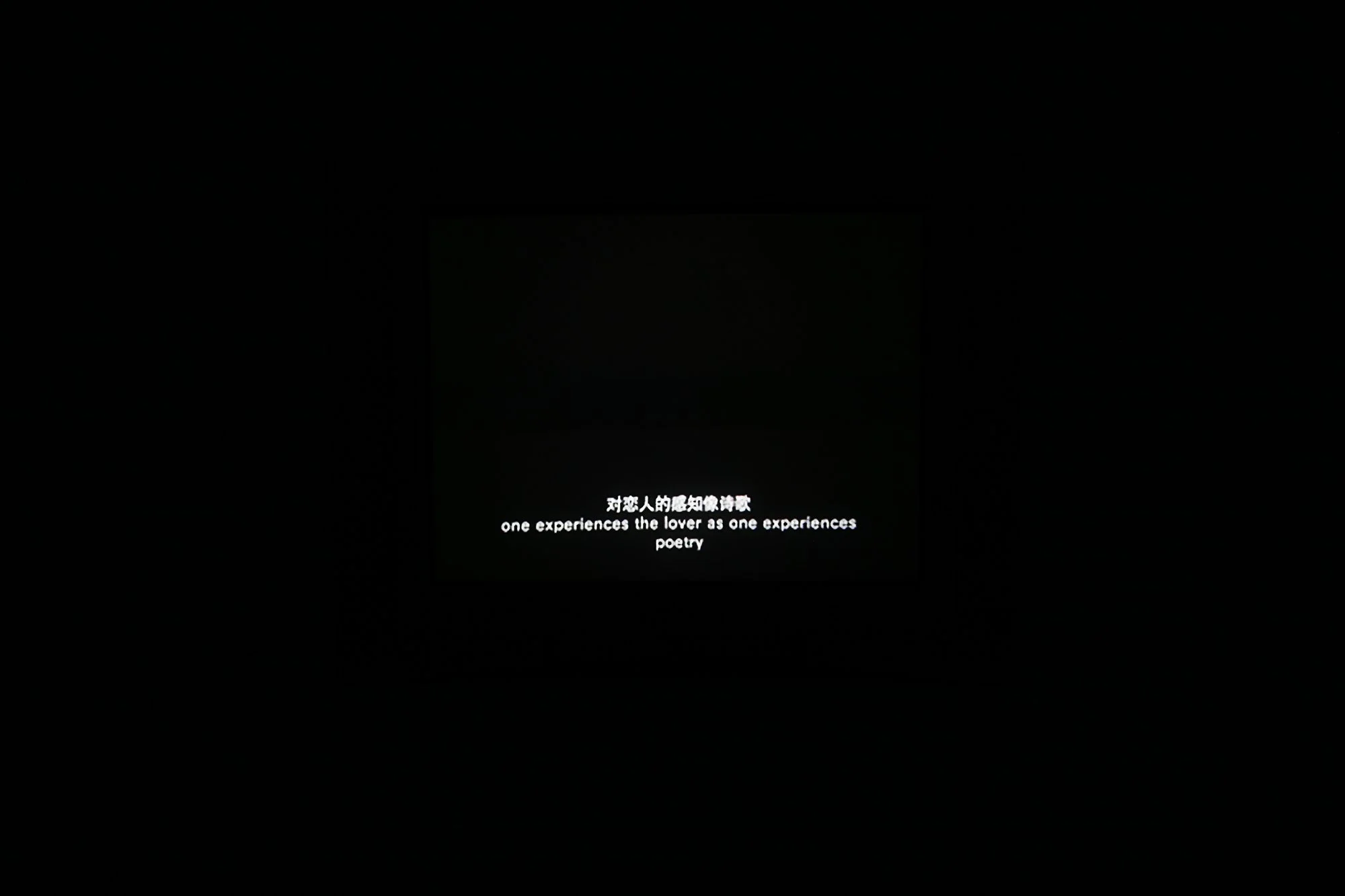 Displayed on a monitor across the gallery, a text Chang recorded and later translated from ten dreams overlays slowed-down video footage also captured by Yuan Yi, itself dreamlike in its abstraction of light and dark. The two videos, which can’t be seen at the same time, do not explain one another but serve as counter balances, both extrapolations of distance and love as mediated by screens. The voyeur sits opposite to untranslatable interiority. Quiet, spare, and saturated with time in the shape of shared moments, Chang’s installation elucidates the bare potential of storage media, while gesturing to the mundane in-capturability of togetherness.